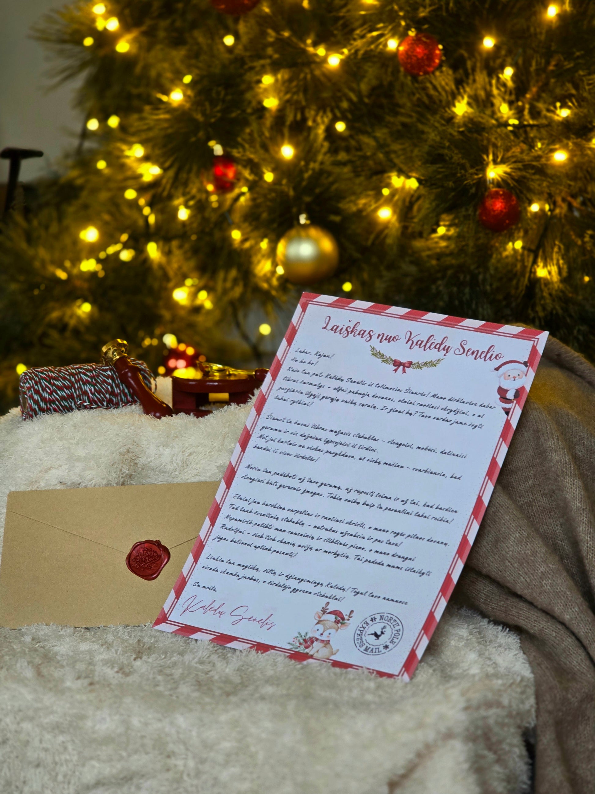 📨 Laiškas nuo Kalėdų Senelio (su vaiko vardu) – pristato save, pasakoja kaip ruošiasi kelionei ir leidžia vaikui pajusti šventinę magiją.