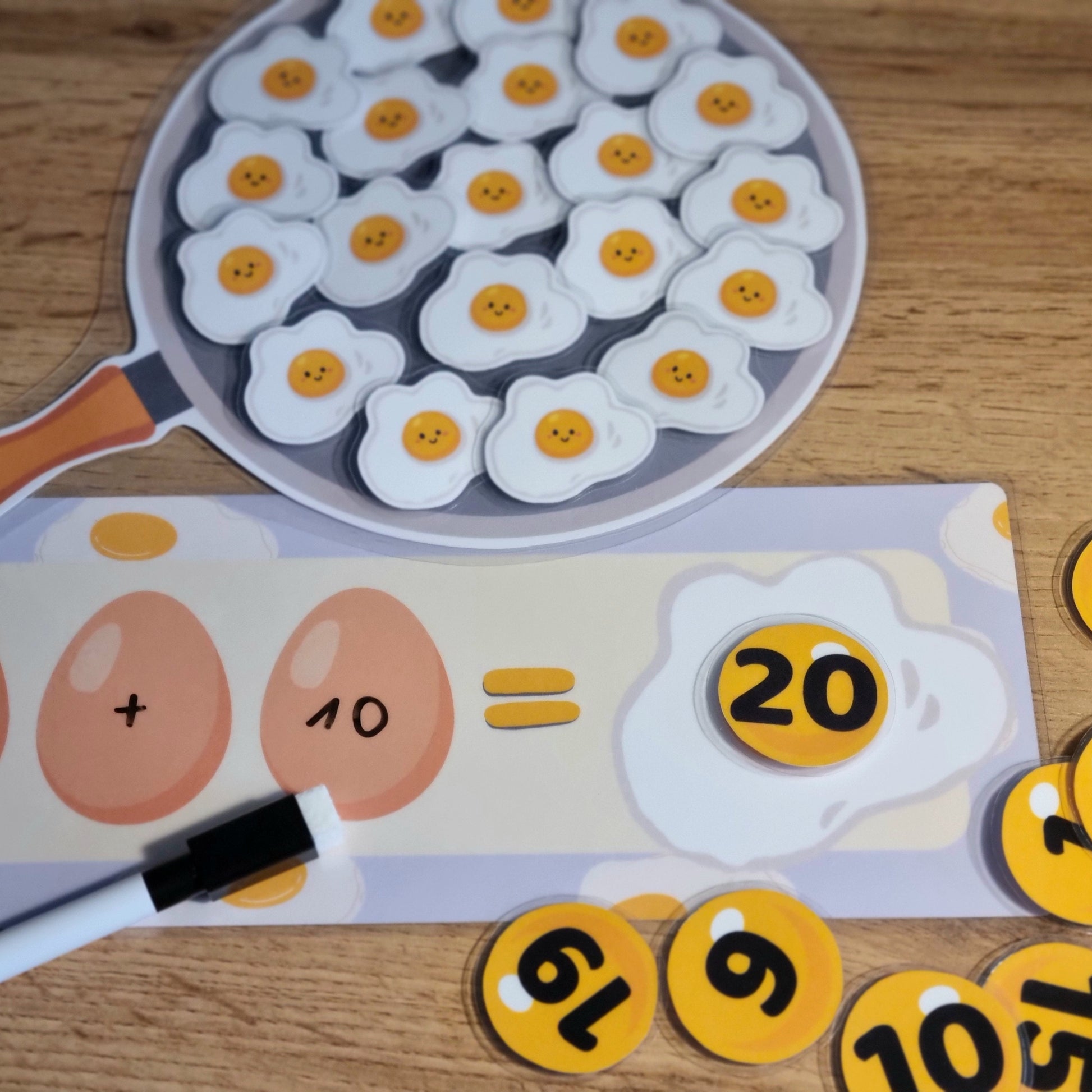 Vaikai skaičiuoja iki 20, atlieka veiksmus, dėlioja kiaušinius į keptuvę ir randa teisingus atsakymus – mokymasis tampa tikru nuotykiu!