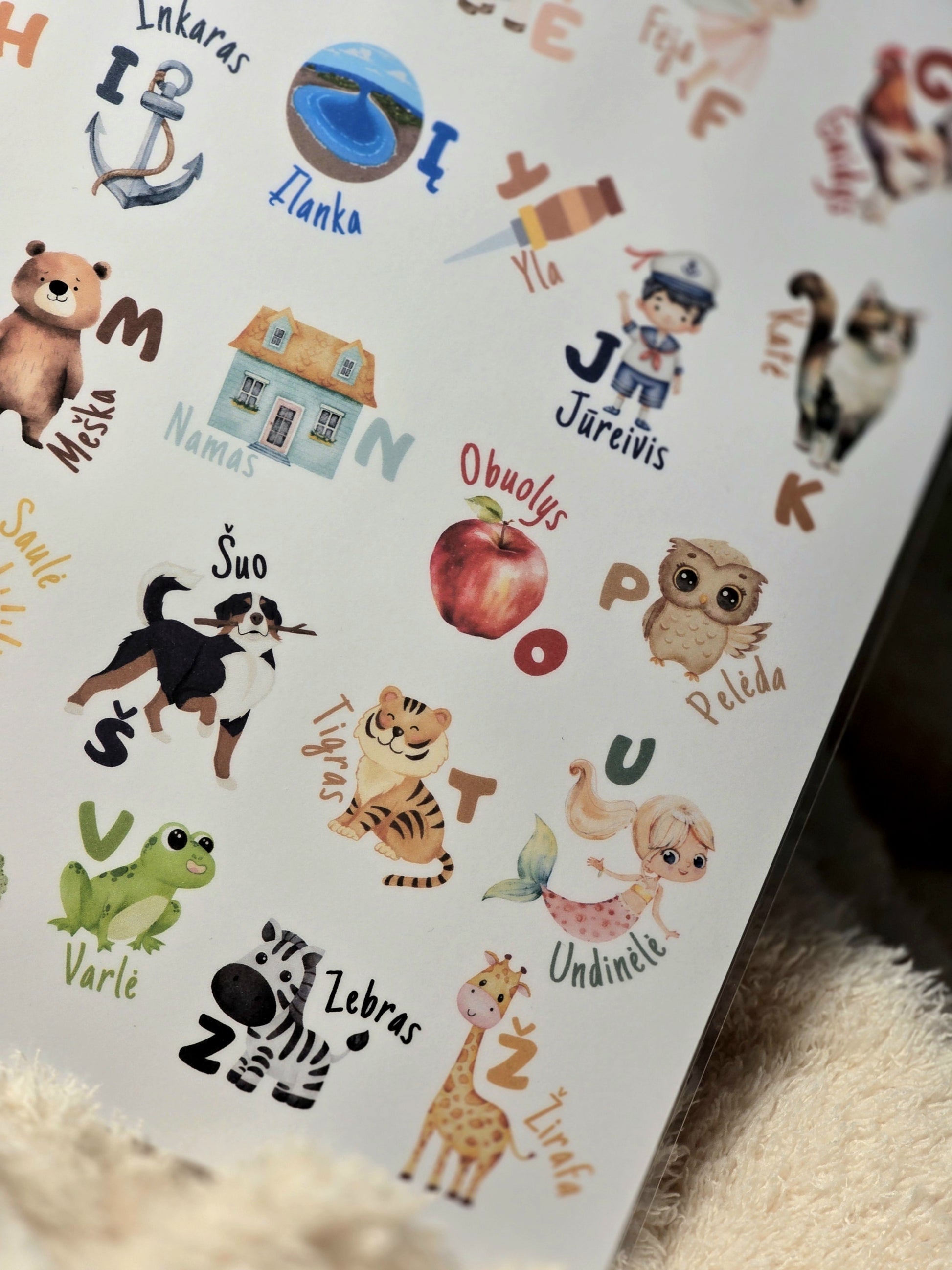 Plakatas sukurtas taip, kad būtų ne tik mokomasis, bet ir jaukus interjero akcentas vaikų kambaryje ar žaidimų erdvėje. Vaikas gali į jį žiūrėti, klausinėti, rodyti, kartoti – savo tempu, be spaudimo.